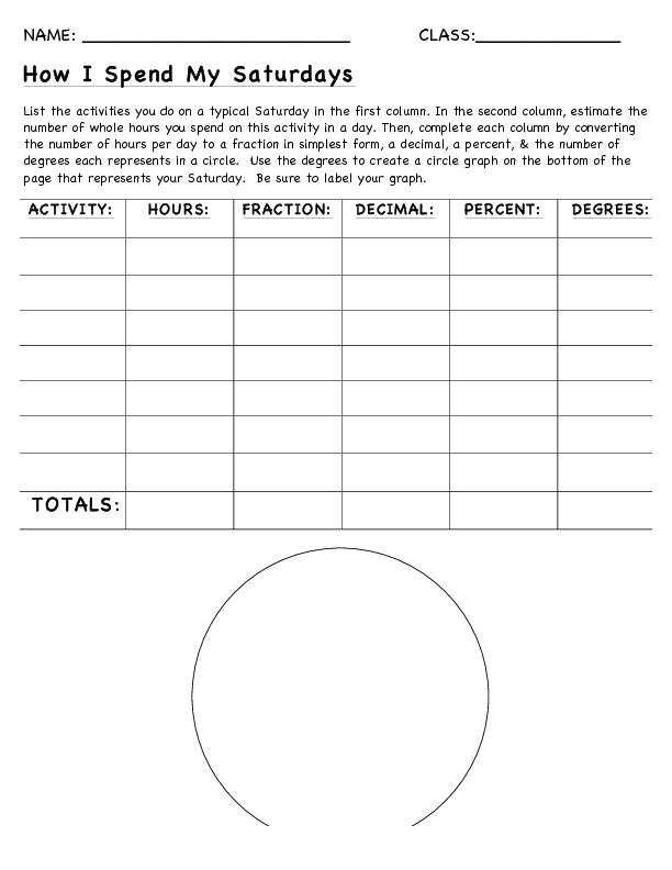 Percent-Decimal-Fraction Chart Worksheet Lesson Plan for ...
